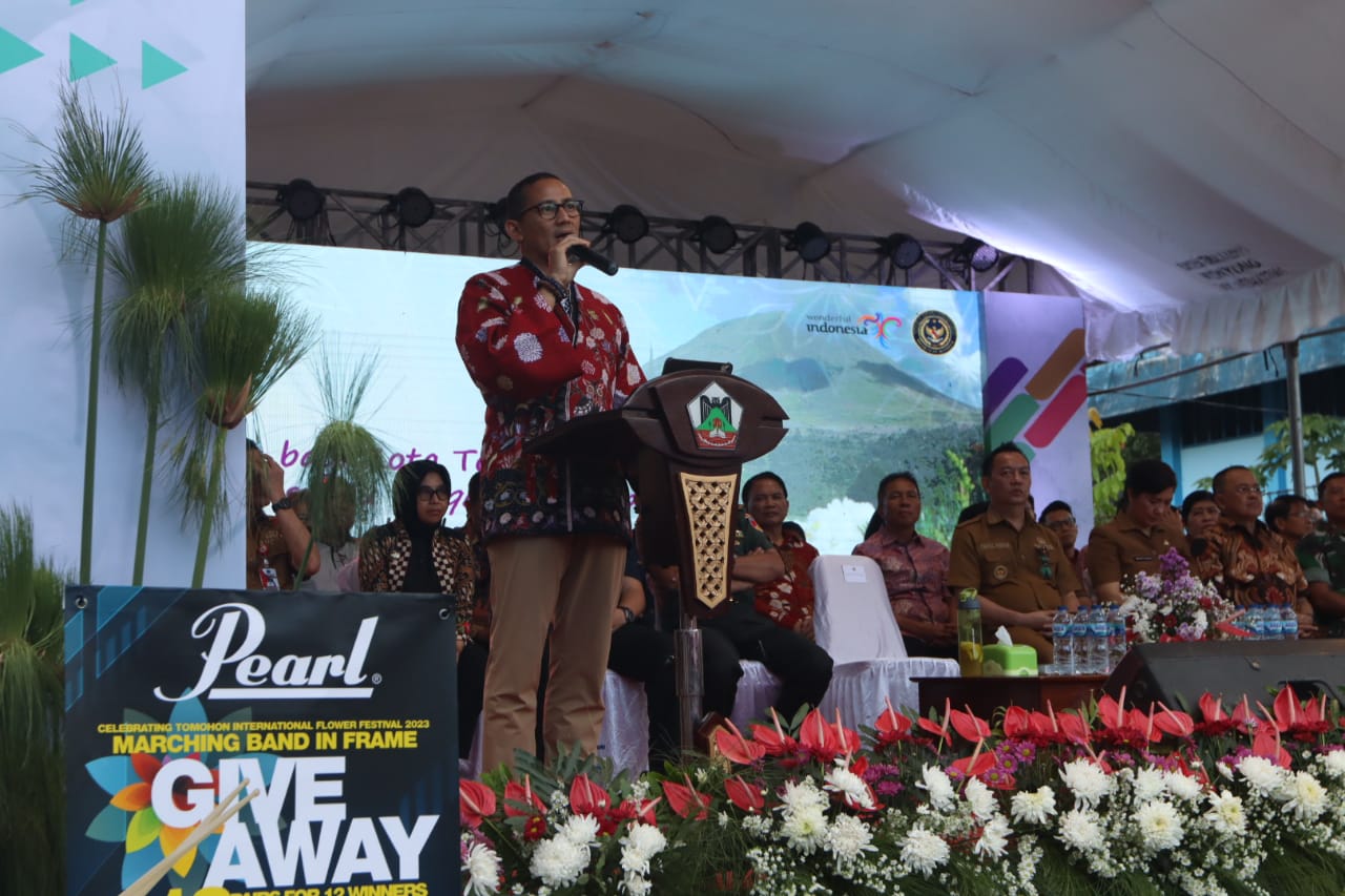 Sambutan Menteri Pariwisata dan Ekonomi Kreatif Republik Indonesia Dr. H. Sandiaga Salahuddin Uno BBA MBA.: Karena TIFF 2023, merupakan salah satu kegiatan yang masuk dalam Kharisma Event Nusantara (KEN), bahkan tidak kalah dengan Pelaksanaan Turnament Of Roses yang ada di Pasadena dan Event – Event Global lainnya. Khususnya Kota Tomohon mari berbangga. Pelaksaan TIFF 2023 diharapkan bisa menjadi penopang untuk menjual Pariwisata Kota Tomohon. Serta membantu kemajuan pelaku UMKM. Bagi masyarakat Sulawesi Utara, untuk lebih memperkenalkan keindahan Kota Tomohon, dengan begitu bisa menunjang pertumbuhan ekonomi kreatif di Kota Tomohon.