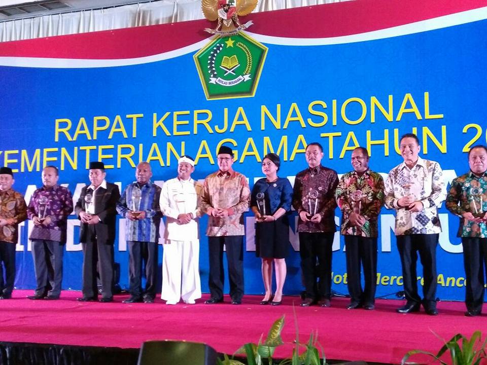 Penghargaan Harmony Award diserahkan langsung oleh Menteri Agama RI Lukman Hakim Saifuddin, dan turut hadir mendampingi walikota Tomohon: Ketua FKUB, Pdt. Joy Palilingan, Kepala Kantor Depag Kota Tomohon, Evangeline Sepang; Kepala Badan Kesbangpol, Jusak Pandeirot; Kabag Kesra, Laurens Kawuwung dan Kabag Humas dan Protokol Christo Kalumata, SSTP. #tomohontangguh