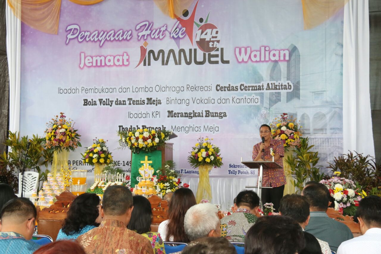 Walikota Tomohon, Jimmy F. Eman, SE .Ak mengatakan merespon akan pekerjaaan pelayanan yang senantiasa selalu memberkati seluruh anggota jemaat, tentunya ada sukacita dan syukur yang hendak jemaat persembahkan kepada Tuhan, olehnya dalam syukur dihari ini mau menyatakan bahwa jemaat senantiasa mengimani Tuhan Yesus Kristus yang karena kasih anugerahNya jemaat ini boleh bertambah usia. Hal ini diungkapkan Walikota JFE disela ibadah syukur HUT ke-149 jemaat Imanuel Walian yang dilaksanakan di pembangunan gereja baru Kelurahan Walian Minggu (16/7/17). Dikatakannya perlu dimaknai bersama perayaan syukur ini jangan hanya sekedar ceremonial melainkan ditunjukan dalam kehidupan pelayanan ditengah jemaat dan juga melalui sikap dan cara hidup kita sehari-hari ditengah masyarakat. “Hal ini penting untuk dipahami agar kita tidak hanyut dengan berbagai bentuk perayaan yang sifatnya ceremonial dan bahkan menjurus pada pesta semata”, kata Eman didampingi Wawali Syerly Adelyn Sompotan.