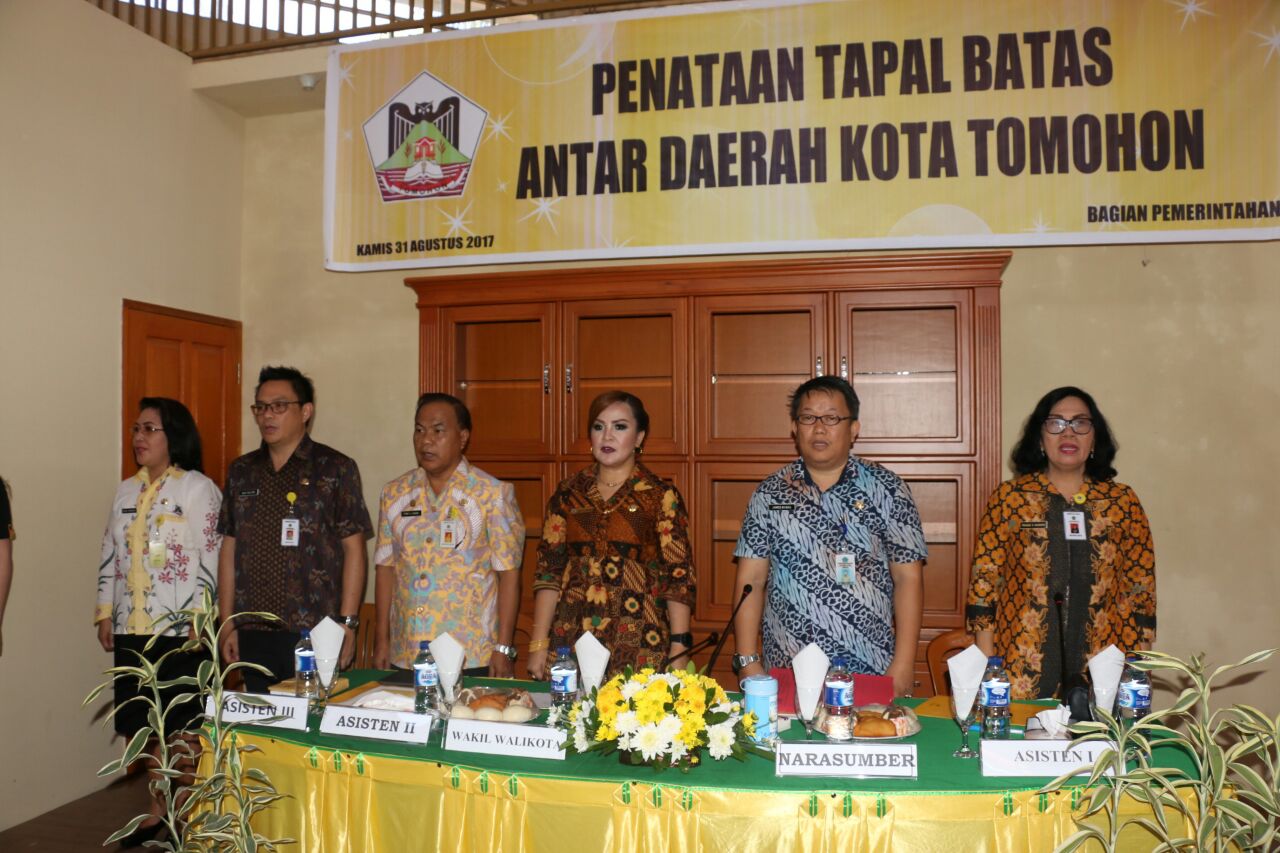 Kamis, 31 Agustus 2017, bertempat di Gedung Ex Keuangan dilaksanakan Kegiatan Penataan Tapal Batas Antar Wilayah di Kota Tomohon. Kegiatan yang diselenggarakan oleh Bagian Pemerintahan Sekretariat Daerah Kota Tomohon ini dibuka oleh Wakil Walikota Tomohon, Syerly Adelyn Sompotan.