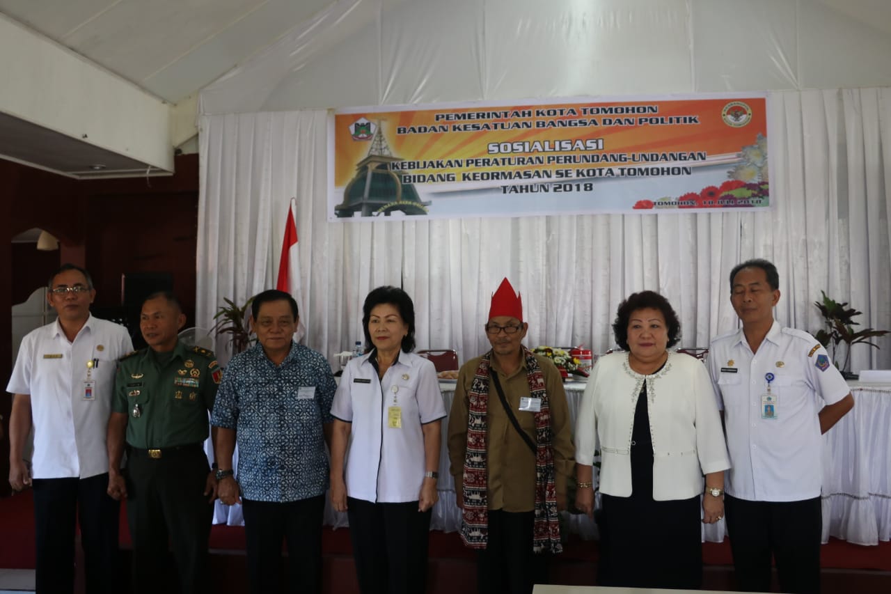 Pemerintah Kota Tomohon melalui Badan Kesatuan Bangsa dan Politik Kota Tomohon mengadakan Sosialisasi Kebijakan Peraturan Perundang-undangan Bidang Keormasan Se -Kota Tomohon tahun 2018 bertempat di Rog’s Kolongan, Rabu (18/7).