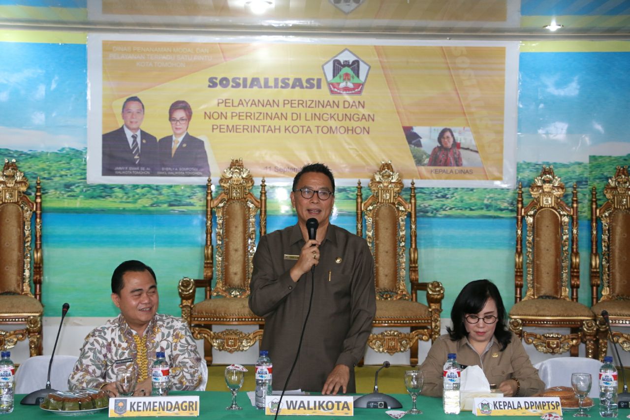Walikota Tomohon, Jimmy Feidie Eman, SE. Ak menghadiri Sosialisasi Pelayanan Perizinan dan Non Perizinan di Lingkungan Pemerintah Kota Tomohon yang diadakan di Aula Rumah Dinas Walikota Tomohon Senin(11/9/17).