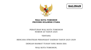 Peraturan Wali Kota Tomohon Nomor 20 Tahun 2025 tentang Rencana Strategis Perangkat Daerah Tahun 2025-2029