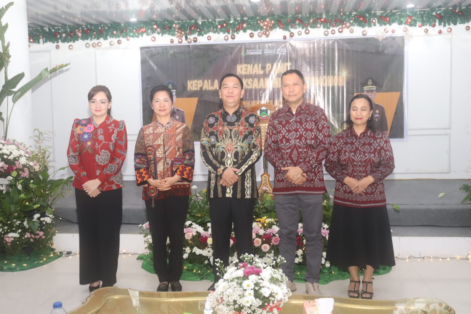 Wali Kota Tomohon, Caroll J. A. Senduk, S.H., didampingi Ketua TP-PKK Kota Tomohon, drg. Jeand’arc Senduk-Karundeng, bersama Wakil Wali Kota Tomohon, Sendy G. A. Rumajar, S.E., M.I.Kom., menghadiri acara Kenal Pamit Kepala Kejaksaan Negeri Tomohon dari Reinhard Tololiu, S.H., M.H., kepada Adi Imanuel Palebangan, S.H., M.H. Kegiatan tersebut dilaksanakan di Rumah Dinas Wali Kota Tomohon pada Jumat, 24 April 2026.