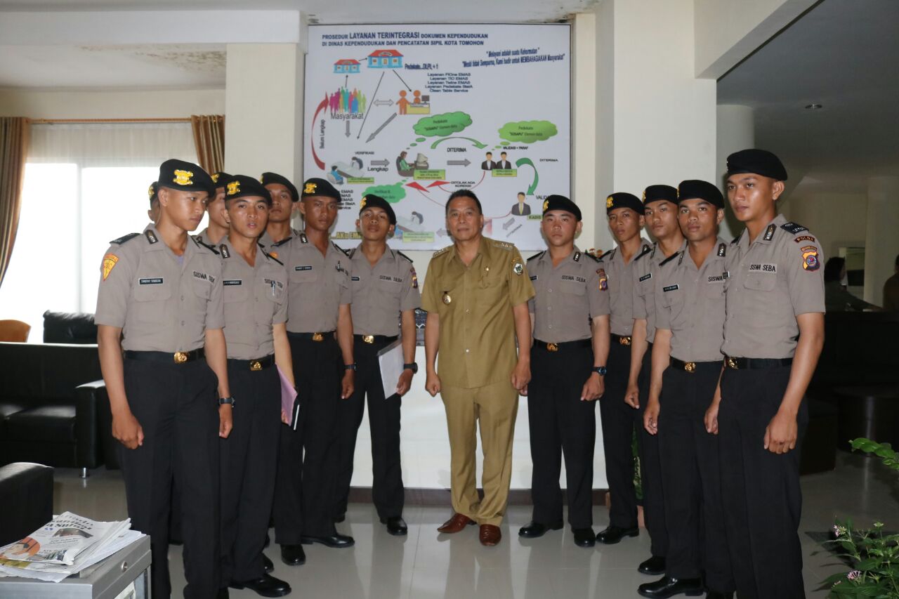 Walikota Tomohon Jimmy F Eman SE Ak menerima kunjungan dari para siswa Sekolah Bintara Polisi (SEBA) SPN Karombasan Manado Sulawesi Utara. Kunjungan dilakukan di Kantor Pelayanan Publik Kota Tomohon, Senin (9/10/17).
